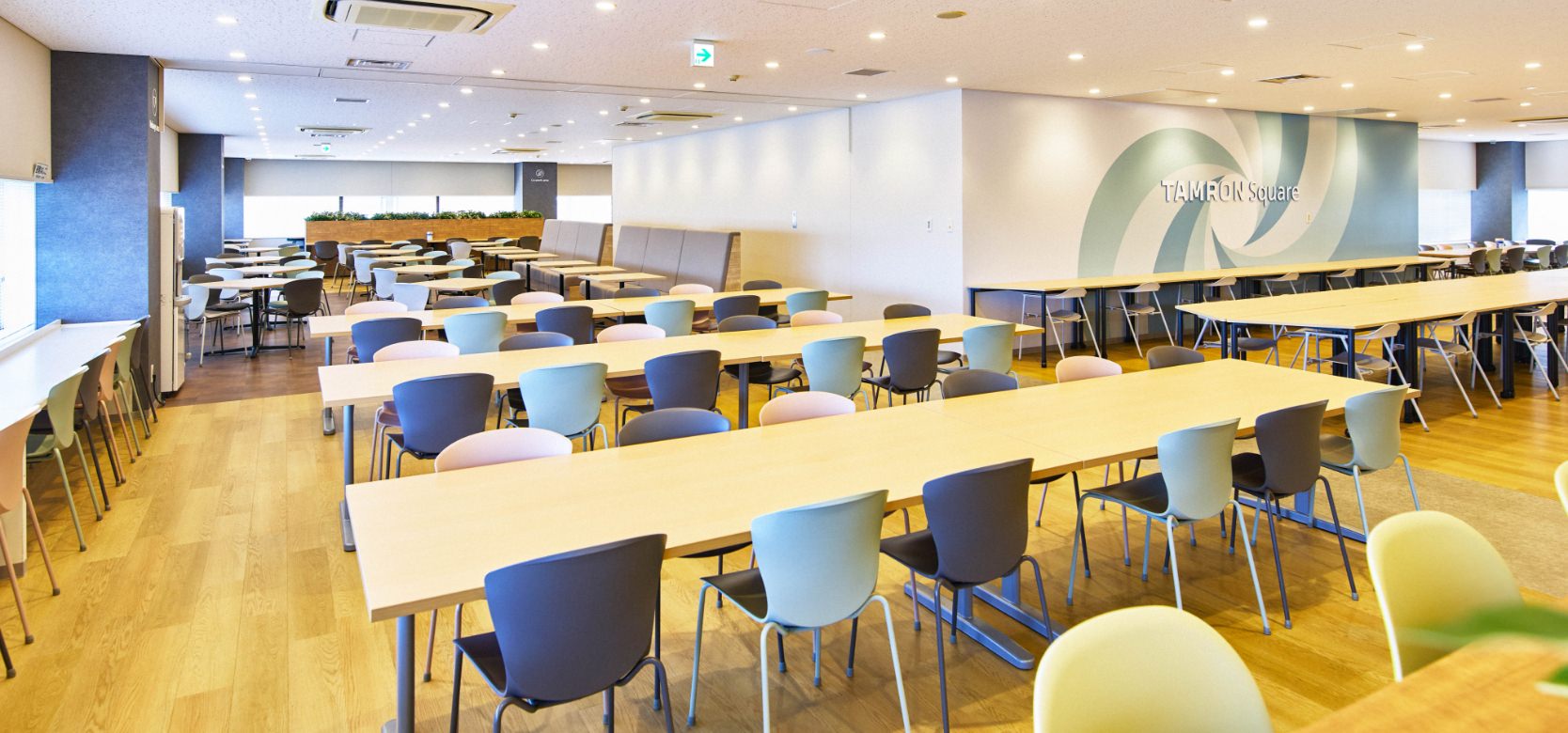 多くの社員が利用する食堂で、さまざまなメニューをリーズナブルに提供しています。お昼の時間は食堂として利用されるほか、打ち合わせや休憩にも利用することができます。