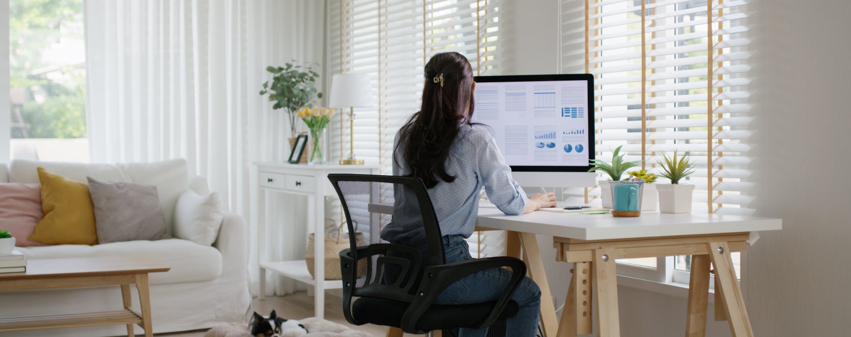 本社ではフレックスタイム制度を導入しています。4時間のコアタイムと所定労働時間を1か月内に満たすことを条件に勤務時間をコントロールし、プライベートとの両立がしやすい働き方が可能です。